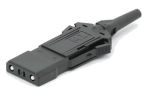 A rigid protective shroud guards the connector's floating ferrules against damage from mishandling or mismatching. The connector can be chosen to accept either flat 'zip-cord', or round duplex cable.