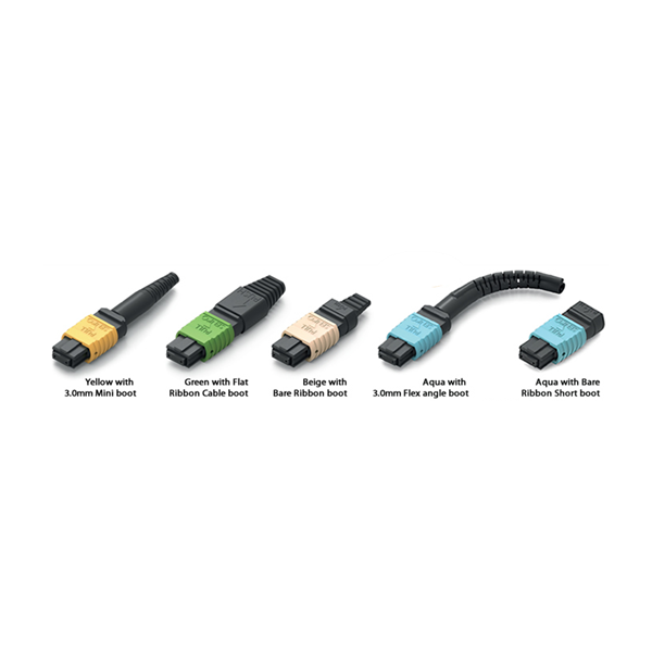 MPO connectors utilize precision molded MT ferrules, with metal guide pins and precise housing dimensions to ensure fiber alignment when mating. The MPO can be mass terminated in combinations of 4, 8, or 12 fiber ribbon cables. The MPO Adapter comes standard in black.