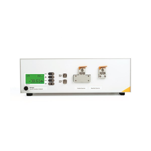 The OP1021 Launch Condition Analyzer is a convenient and compact benchtop Nearfield and Farfield scanner for optical fibers. Coupled with windows application OPL-LCA, the user can scan and easily plot both the Nearfield and Farfield patterns of any compatible fiber. In addition to comparing the Nearfield and Farfield patterns to standard launch templates, the Encircled Flux is calculated and compared to various IEC templates.