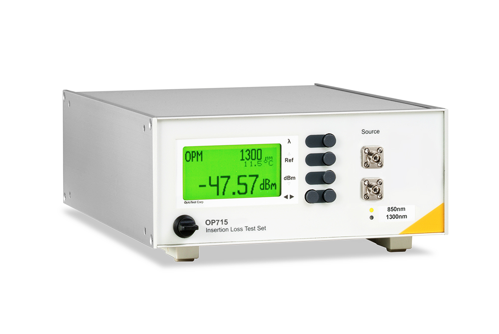 The OptoTest OP715 Benchtop LED/LASER Source can be configured up to 4 channels with a mix of LEDs and/or LASERs. Ideal as a compact, stand-alone source or used in conjunction with an optical power meter to measure insertion loss. Factory configurable wavelength mix including LED and LASER.