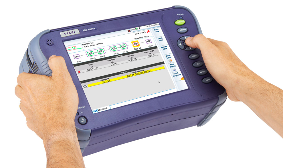 The Viavi Solutions® Hi-Res multimode OTDR solution characterizes and locates faults on very short multimode fiber runs deployed in aircraft, spacecraft, submarines, and ships. It is the industry’s most compact, lightweight, and portable unit, enabling testing in areas where access to fiber