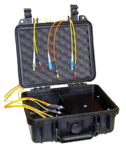 - The bare fibre spool is secured inside the box from which two ruggedised flying leads provide approximately 1 metre of connectivity.